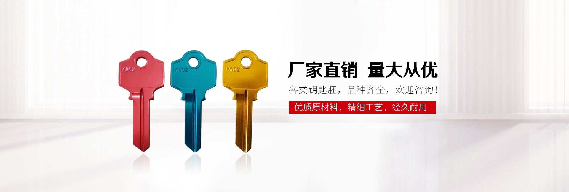 公司專(zhuān)業(yè)生產(chǎn)各種規(guī)格的鑰匙坯,品種規(guī)格已達(dá)上萬(wàn)種,年產(chǎn)量達(dá)2億把的規(guī)模,客戶遍布全國(guó)各地,并遠(yuǎn)銷(xiāo)歐美中東二十多個(gè)國(guó)家和地區(qū)。。